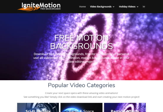 Unlike the other websites of this list, IgniteMotion offers free motion backgrounds. This website has a decent collection of motion graphics which are good for using as backgrounds. The motion graphics are sorted by categories which helps you find the relevant motion backgrounds easily. The length of the graphics is short and perfect for looping. All these motion backgrounds are royalty-free and available in 1080p resolution. You can download them either in MP4 or MOV format.