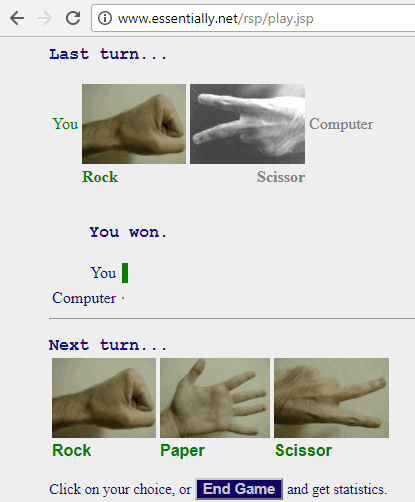 When one game is completed, another can be started. This is all you can do on this website. If you need a very simple website that can help you play Rock-paper-scissors online, then this is a good website to try.