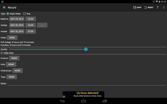 That’s what I’m doing on the image above. You’ll need to enter things like when did you go to bed, when did you fall asleep, when did you wake up, etc. It’s basically a diary app for sleeping.