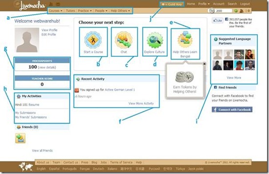 LiveMocha is the first website reviewed here to learn foreign languages by talking to natives. This is like a virtual community of users who are here to learn one language or the other. This website supports more than 200 languages and you can learn any of them by signing up for a free account.