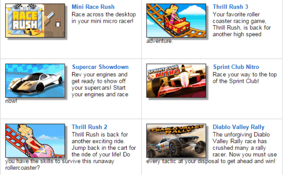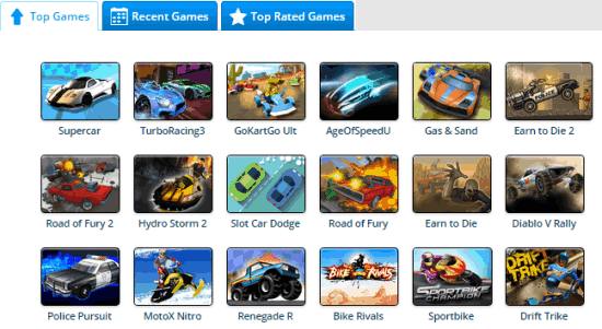 The website GamesForKidsFree.net has more than 80 racing games for kids. You can choose to sort them on the basis of either popularity or date (newest). The website doesn’t provide any information for any game beside a thumbnail image and the game name. This website also provides you with different type of racing games related to different types of vehicles.