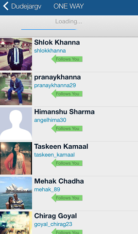 The application welcomes you with a login screen in which you have to enter your Instagram ID and password. On successful authentication you enter a screen which shows your followers and the people you follow. It provides you the following information: