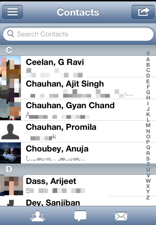 A2Z Contacts Free is an iPhone contact managing app which comes with lots of features as compared to other free apps. This app categorizes your contacts to different groups by default. If you want then you can also make your custom groups. The app lets you mark contacts as Favorites. You can sort the contacts on different basis like Companies in which they work, Birthdays, Anniversaries, Most Viewed, Recently Created, and Recently Modified. You can send group messages/email and also backup the contacts.