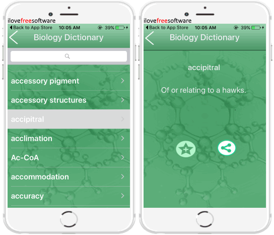 If you are a student who is learning biology, then these free offline dictionary iPhone apps will help you find the meaning of most biological terms out there. I will recommend you to check out Biology definitions as I really liked its simple interface but if you also want to share the biological terms with others, then Biology Dictionary Offline Free is a good option.