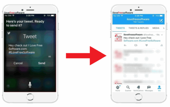 You can then check your Twitter profile to see if the tweet was posted by Siri or not. In my case, I was able to post tweets without any issue, as shown in the screenshot below. The best part was that I could include hashtags, links, etc. as well. However, I certainly faced some problems while mentioning Twitter users as it added spaces. Well, you can check it at your end to see how well it works for you. You will certainly enjoy tweeting with Siri :)