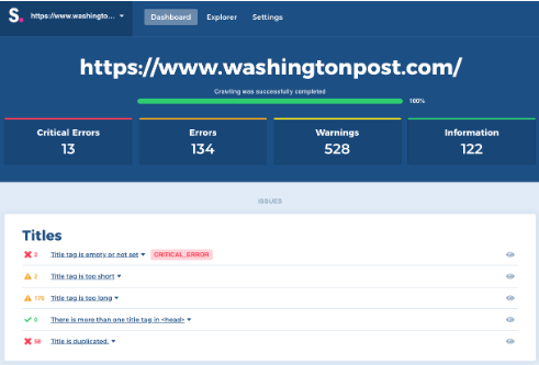 It basically analyzes the SEO parameters like heading and title tags, image alt attributes, mobile friendliness, page load time, metadata, internal links, and external links on the web page. However, despite generating a beautiful report, there is no option to export that. You can just see the report and analyze that.