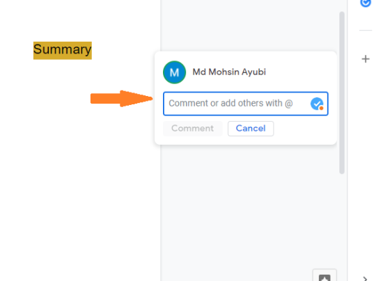 For example, I want my team member to change the summary, so I’ve selected the text “Summary” and you can see the Add comment “+” button.