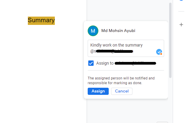 This is how you assign tasks to people in Google Docs. Its a pretty straight forward way to assign tasks.