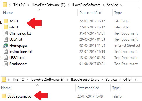 Step 1: Grab the ZIP file of USB Capture and then extract the contents. In the extracted folder, you will see the 32 bit and 64 bit version of the software. So, depending on what architecture your PC is running on, open the folder, and copy the “USBCaptureSvc” to C drive.