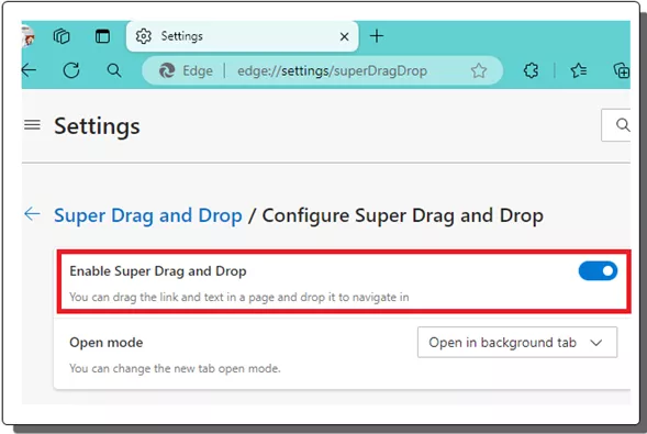 - Go to edge://settings/superDragDrop and then enable it from there and start using it.
