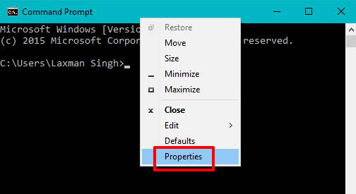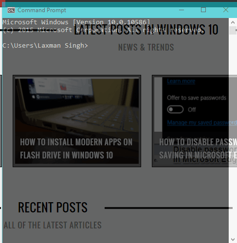 Above you can see the opacity level adjusted by me for Command Prompt in my Windows 10 PC.