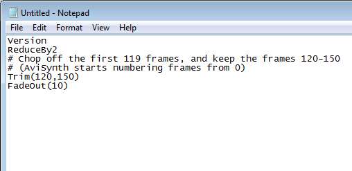Scripts that you create can be written in any text editor. On the example above we used Notepad. Once that we filled out all the commands that we want Avisynth to perform, we saved the document with AVS extension. In order to run this script you now need to open up VirtualDub, like we already mentioned, or any other video editor that can run scripts. Load that script and just let it run. All the commands will be executed and applied to the AVI videos that you have opened up.