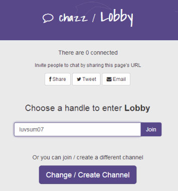 Apart from joining the lobby, you can create your own chat room to chat anonymously. Benefit of creating chat room (or channel) is that you can share channel link with any person and start chatting. Neither your chat history is saved nor you have to create any account. Chat is visible only when you are connected with your channel or lobby.