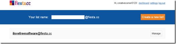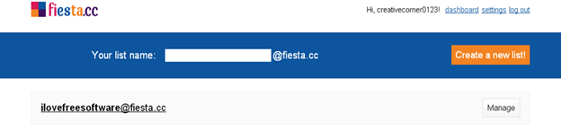 - When you click on the confirmation link you will be directed to the dashboard page on fiesta.cc and there you can manage your mailing list and can add more names.
