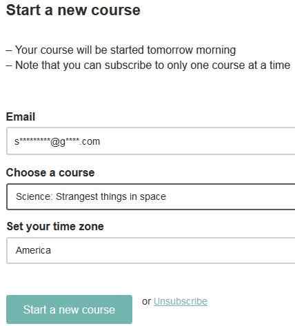 You can see that the course duration is 10 days and you will receive an email everyday for 10 days with information about space. Go ahead and click the signup button to start receiving information on this topic.