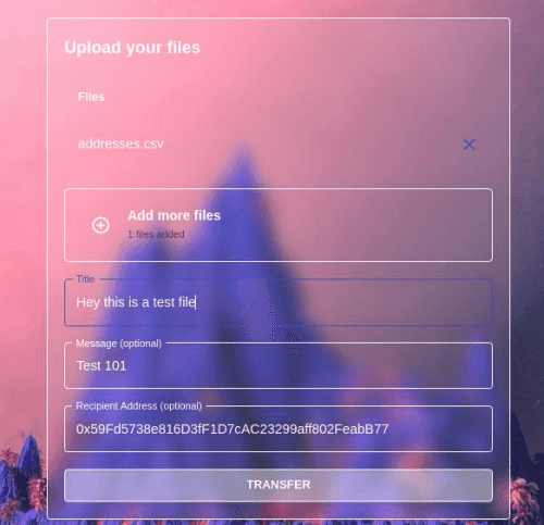 Now, you share the file in the same way, but you will be able to use the other feilds. If you are sending a file to some other Metamask user then you can add his address in the “Recipient Address” field and by doing this only the recipient will be able to download the file.