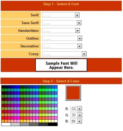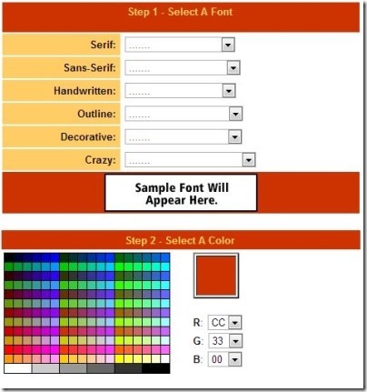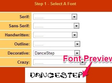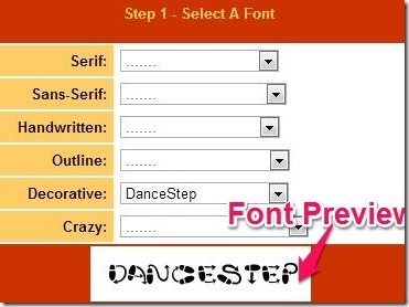 Step 1: It provides you variety of fonts, of various categories, like: Serif, Handwritten, Outline, Crazy, Decorative, and Sans-Serif. You an choose the desired font and see its preview and finalize the font (see screenshot above).