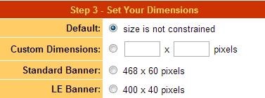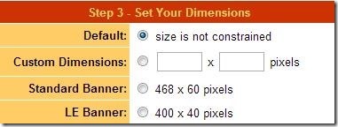 Step 3: Here it allows you to set the dimension of the banner. It offers you two size templates, and at the same time allows you to custom set the size as well. Plus, it also provides you a default option, which you can use to set the size of the banner by its own.