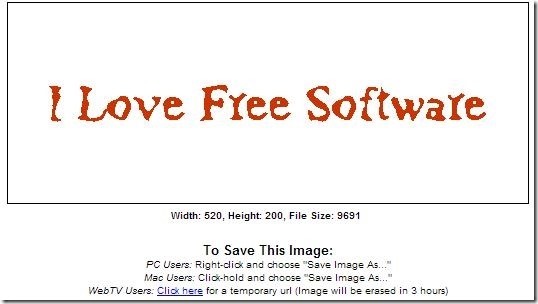 After making all these settings, you need to provide the text for which you need to make the banner. The text will be rendered using the font you selected earlier. Once banner is created, you can downloaded the banner as animated GIF file. It also generates the URL of the 3D banner which is to be saved within 3 hours, as the banner would be deleted from the server after that.
