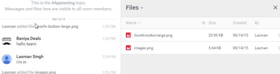 Now at the center of the screen you will see two windows. The one on the left is the whiteboard where anything you type can be seen by all your team members. The second window on the right side will show all the files that were shared during the chat conversation. This files window can easily be closed and opened again when needed. A screenshot of this can be seen below as well.