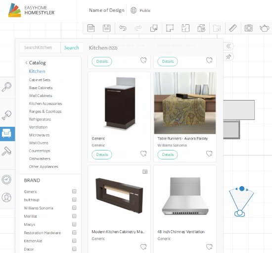 HomeStyler is another totally free online kitchen designer on my list. As compared to the previous online kitchen designer, it lets you add various kitchen appliances in the kitchen design layout. You can simply choose different types of appliances like cabinets, refrigerators, dishwashers, etc. and place them in any part of your kitchen room layout. The best part is that it gives you the option to capture the screenshot of the kitchen design and save it as an image on your PC. So, after designing a kitchen design with this tool, you can take its screenshot and then show it to the civil engineer to build your dream kitchen. What makes it more interesting is the fact that it comes with a unique editing interface which lets you see the both 2D and 3D views of the kitchen design at the same time.