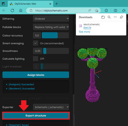 ObjToSchematic is a free and open-source tool that allows you to easily convert any given OBJ file to Schematic format. Later you can add this file in your Minecraft village using some other tools. A really big advantage of this app is that you can use it to create custom objects from 3D models and then add them to your Minecraft map to impress others.
