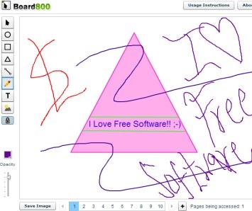 Thus, it’s a multi-user drawing application in which you can work with your friends simultaneously. It’s a bit different from other online whiteboard applications as a session created by you will remain active for 90 days. After that, your session will expire and all stuff created by you will also be deleted automatically. But that’s not a problem at all as you can save your work to your computer anytime. Create drawings, be creative, and save your work as a png image file format. Lets see what you can do with Board800!