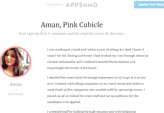 Above screenshot shows story of one of those entrepreneurs who have submitted their stories of getting first 3 customers.