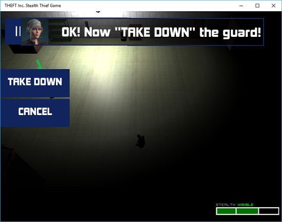In the game, you will also encounter your biggest enemies – the guards. If a guard sees you (or even if he does not), it’s better to take him down. Guards can be taken down by hovering your mouse over them which brings up the target indicator, clicking on them and finally selecting the TAKE DOWN button from the menu which appears when you click somewhere in the game.