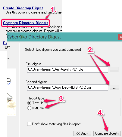 Step 7: Open the interface of this software. This time you need to select Compare Directory Digests option. After this, you need to insert both digest files.