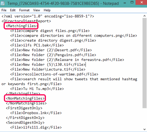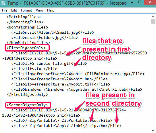 You can see the matching files (if available) as well as non-matching files. Scroll down the Notepad to see which files are present in the first directory and which files are available in the directory of another PC.