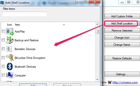 - You will be able to add shell location, like network place, administrative tools, control panel, etc. to My Computer, and in navigation pane.