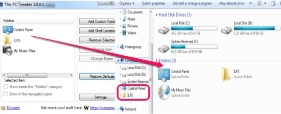 This PC Tweaker is useful application that allows to bring those items to My Computer and in navigation pane, that are needed by users multiple times in a day. You can add items according to your requirement and can also categorize items by adding them in folders category.
