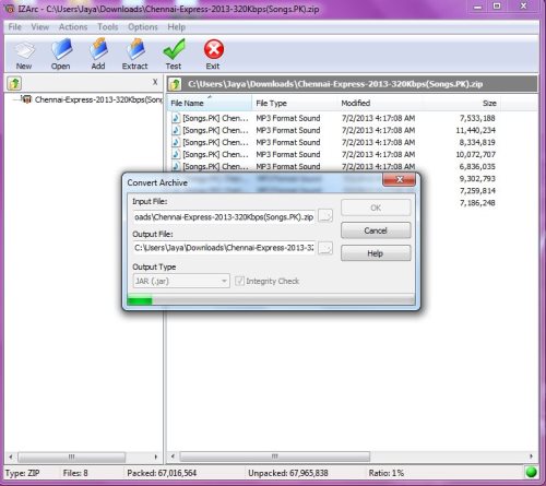 IZArc also provides you the facility to convert one archive type to another. Like the screenshot above, we are converting our zip file into a jar file. You get various other formats to convert your archives to like 7-zip, Cab, jar, tar, etc.