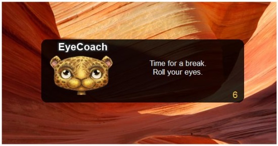 EyeLeo is a free break reminder software that lets you set reminders for taking breaks while you work on PC. Apart from reminding you of the periodic breaks, it dims off your computer screen and shows you some eye exercises, so that you actually relax your eyes and prevent them from any harm.