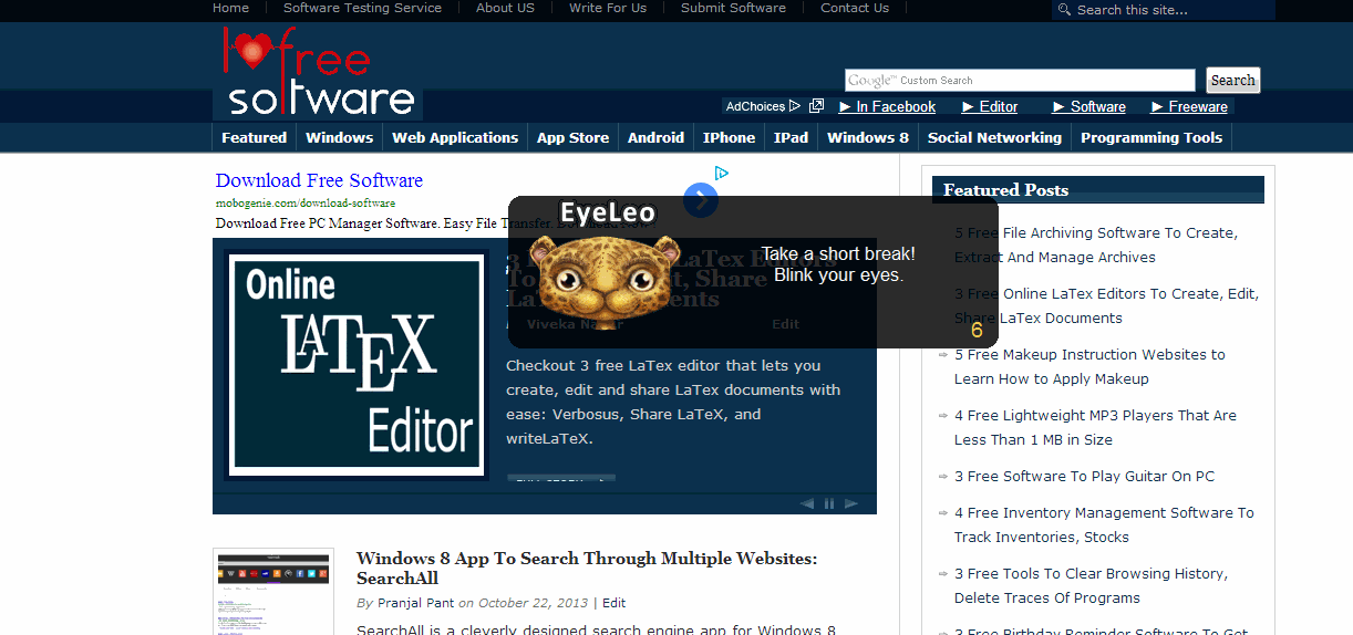 Constantly staring on the desktop screen for long hours might result in serious eye problems, including decreased blinking and dryness. That is why it is always advised to take small breaks every half an hour while you work on computer. However, most of the time we get so much involved in our work that we easily forget we have to take a break. There comes these handy break reminders that reminds us of the breaks on regular intervals. EyeLeo is one such break reminder tool, available as a complete freeware for Windows users. Let’s see how EyeLeo works.