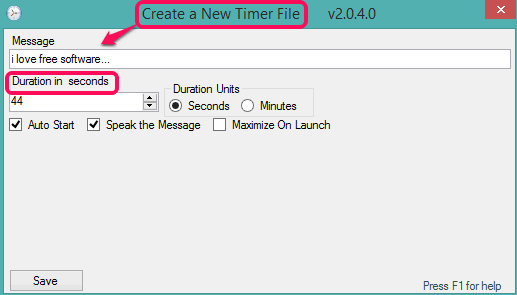 You can also enable the option to ‘Speak the Message‘. Save the timer. After saving the timer file, it will also prompt you to save the shortcut of timer. Similarly, you can create as many timer files as you want.