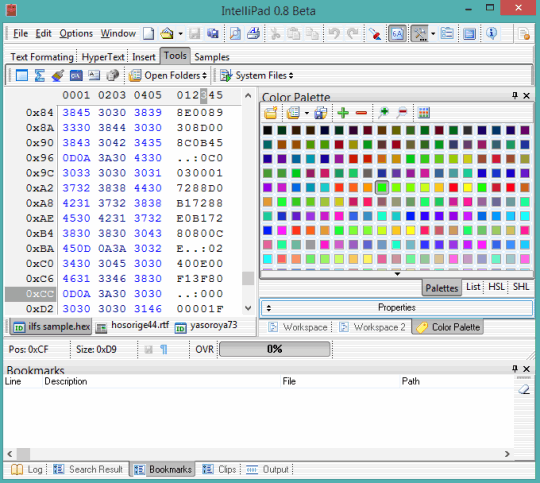 IntelliPad (beta) is a multipurpose software that can edit text files, hex files, LaTex, VBScript, CSV, and other files. You can open and edit multiple documents together. There are dozens of features that makes it a good competitor in this list. For example, you can open any file as hex file, use regular expression to search a string, syntax highlighting feature for programming files, drag n drop a file to open quickly, search n replace tool, and other features that should be available in a good file editor.