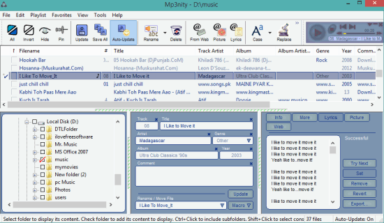 Mp3nity is a powerful MP3 tag editor software in this list that provides a navigation pane to insert audio tracks right from its interface. It could automatically fetch correct tags for a particular MP3 file from the web or you can manually edit the tags. Apart from this, you can also download lyrics of a particular song. Feature to grab album cover art is also available. So it is an all in one solution for your MP3 files. So, if your Internet connection is activated while using this software, it will be too easy for you to grab details for your MP3 tracks.