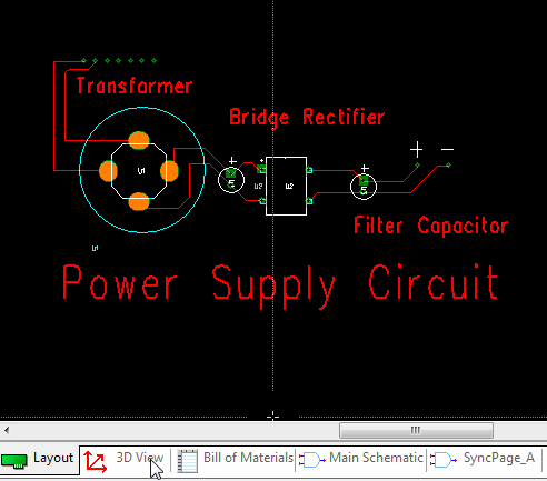Below I have posted a small simulation clip in which you can see the PCB design of power supply I created along with the 3D view of it.