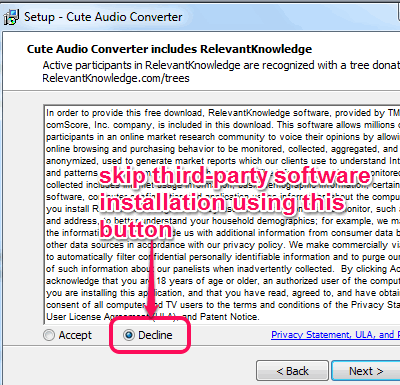 Grab its homepage link placed at the end of this review and download its setup file (around 6 MB). Be careful during the installation as third-party software installation is prompted. You can skip that product’s installation by selecting the Decline button. After this, you can continue the installation process.