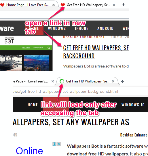 Whenever you will open a link in new tab or multiple links one after other, all those links will open without loading. You can continue with your work and whenever you need to use a link opened by you, just access that particular tab. Now the tab will load and the webpage will be displayed.