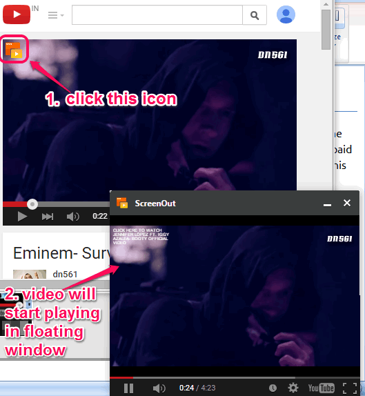 Step 3: Now open any video streaming website supported by this extension and play a video. You will notice ScreenOut icon on the top left side of that video. To pop out that video, you can either click that icon or its extension icon.