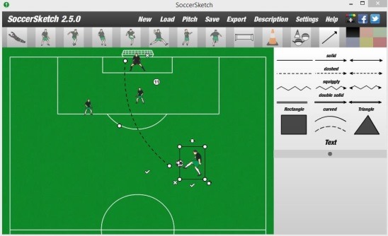 SoccerSketch is a free software, that helps to create and plan soccer training drills. Using the software, soccer coaches can train the players and plan their game plans. This is a lightweight software and is very easy to use, as it’s developed by keeping the coaches in mind. Using this software, you can cerate a proper game drill, by using 120 vector images of players, goal posts, cone icons, straight and curved lines, and make the drills visually easy to understand. You can then save the drills in .ssdf file format and, load them again anytime as references, or you can even export the soccer drill plans as .JPG image file.