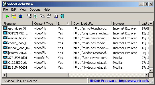 VideoCacheView is a free software that allows one to quickly extract video files from browser cache. When you play a streaming video online, a copy of that is saved in your browser cache, but is deleted soon. VideoCacheView lets you quickly scan your browser cache, and find all the video files from there. This is helpful if you want to play the same video again, without going online.