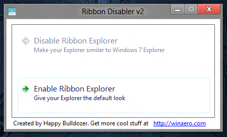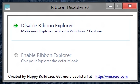 - The first thing that we are supposed to do to disable ribbon in Windows 8 is to download the ribbon disabler for Windows 8. You can download the ribbon disabler for Windows 8 from this link. The link will redirect you to the webpage from where you can get a free copy of the application.