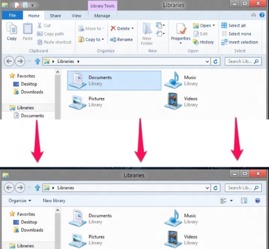 In this manner you can change the look on the new Windows 8 file explorer by disabling ribbon in Windows 8 and make it less cluttered.