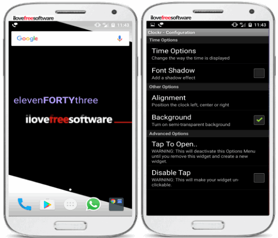 Edit Clock is the first text clock Android app on my list which can display the current time in text format right on your Android home screen. What excites me more is that you can also add a custom text and tweak the appearance of how the time will appear on the Android home screen. You can choose from different font styles, change the text font color, and size. Other than that, there are options to change the text opacity, its texture, add the shadow effect, and others. Not just the appearance of the text time, you can also choose from different date formats and time formats supported. The app comes with a widget that you have to add to your home screen in order to see the current time in text format.