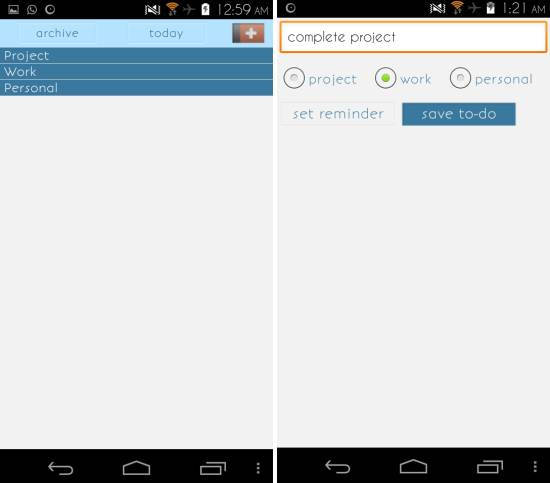 Aizon.me to-do list for Android is a free simple and intuitive To Do List App for Android. This app helps you organize your tasks into three categories. These include project, work, and personal. This simple categorization helps you unclutter tasks and think easily.