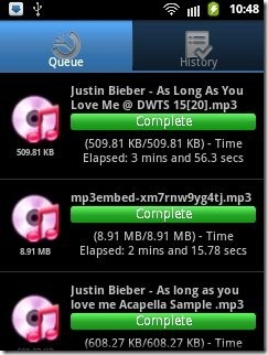 Advanced Download Manager is a free Android download manager app that lets you download files in three different parts. This Android download manager app divides the download of files in three different parts and each part provides certain set download speed. You can easily choose the maximum download speed for each part. Downloading a file in three parts accelerates the overall download which makes your downloads easier and faster. On top of it, you can resume the interrupted download. The app works only on Wi-Fi network. You can start/stop the download only on Wi-Fi network. All the video files will be saved and displayed in the video section, image files in image section, and audio files in audio section of the app. You can even select the download links and add them to the app to download it later at any point of time.